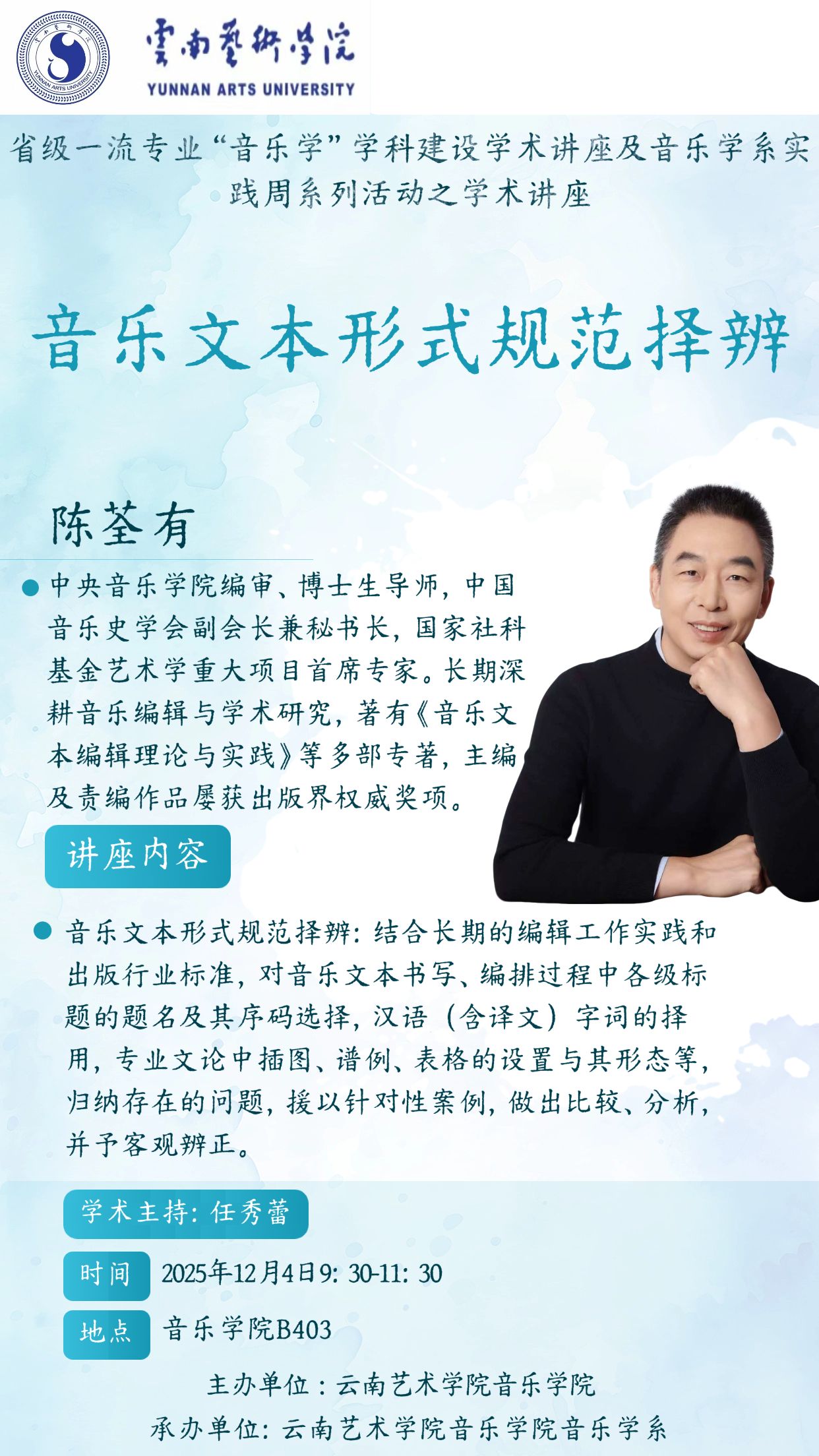 省级一流专业“音乐学”团队建设学术讲座及音乐学系实践周系列活动之学术讲座——音乐文本形式规范择辨