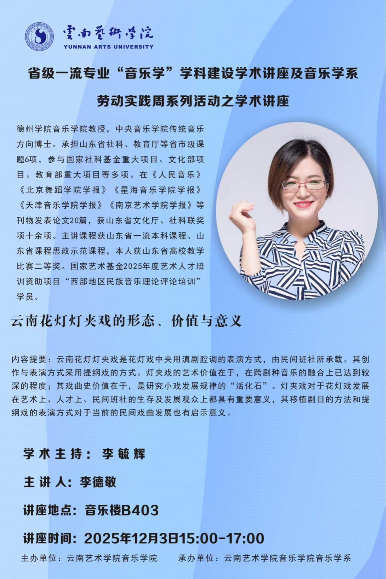 省级一流专业“音乐学”团队建设学术讲座及音乐学系劳动实践周系列活动之学术讲座——云南花灯灯夹戏的形态、价值与意义