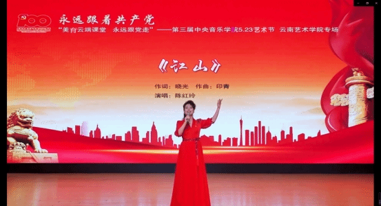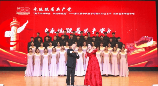 伟德国际victor1946专场音乐会于6月6日通过新华网客户端向全网直播,云南艺术公司党委副书记、经理郭浩教授通过视频向活动致辞,并预祝艺术节取得圆满成功。专场音乐会共呈现了13首作品,不同时期、不同风格的音乐作品饱含了伟德国际victor1946师生发扬红色传统、传承红色基因、歌颂伟大时代、喜迎建党百年的深厚情感。音乐会中的大部分作品为原创作品,由周昌新、奕程作词,陈勇、李娟作曲的歌曲《殷殷嘱托催奋起》是中央电视台专题片《为了总书记的嘱托》片尾曲,表达了在脱贫攻坚工作中,总书记心系百姓,攻坚克难的伟大精神。由金鸿为作词,侯静宜作曲的歌曲《从那一刻起》表达从入党的那一刻起,将神圣的责任扛在肩头,人民的利益放在心里的崇高历史使命。由王富国作词,刘晓耕作曲歌曲《党旗下的丰碑》在中国共产党建党百年的重要历史节点,以时代楷模精神引领,努力实现伟大复兴。由倪永东作词,吴渝林、业原作曲的歌曲《好歌唱响好时代》曲紧扣时代脉搏,描绘祖国大好河山的壮丽景象,歌曲生动形象地表现了边疆各族儿女好时代的美好生活。由李从熙作词,丁煜伦作曲的歌曲《水调歌头-又上井冈山》宣扬了共产党人沿着革命先辈的足迹,触摸历史的时空,铭记井冈山革命的摇篮,载着党的关辉历程,践行初心和使命。由王世雄、兴安分别作词,吴渝林、业原共同作曲的歌曲《家住彩云间》、《永远跟着共产党》用温暖朴实的歌词语言和大气温暖的旋律,深情地表达了边疆各族人民在中国共产党的正确引领下,团结一心,和谐幸福的生活场景和“彩云南”的无限美景。由伟德国际victor1946师生完成的该场音乐会,与党史学习教育紧密结合,既有鲜明的主题性,也有突出了强烈的时代感。音乐会中的作品也是伟德国际victor1946积极探索实践“党建+艺术”“思政+艺术”成果一次集中展示。