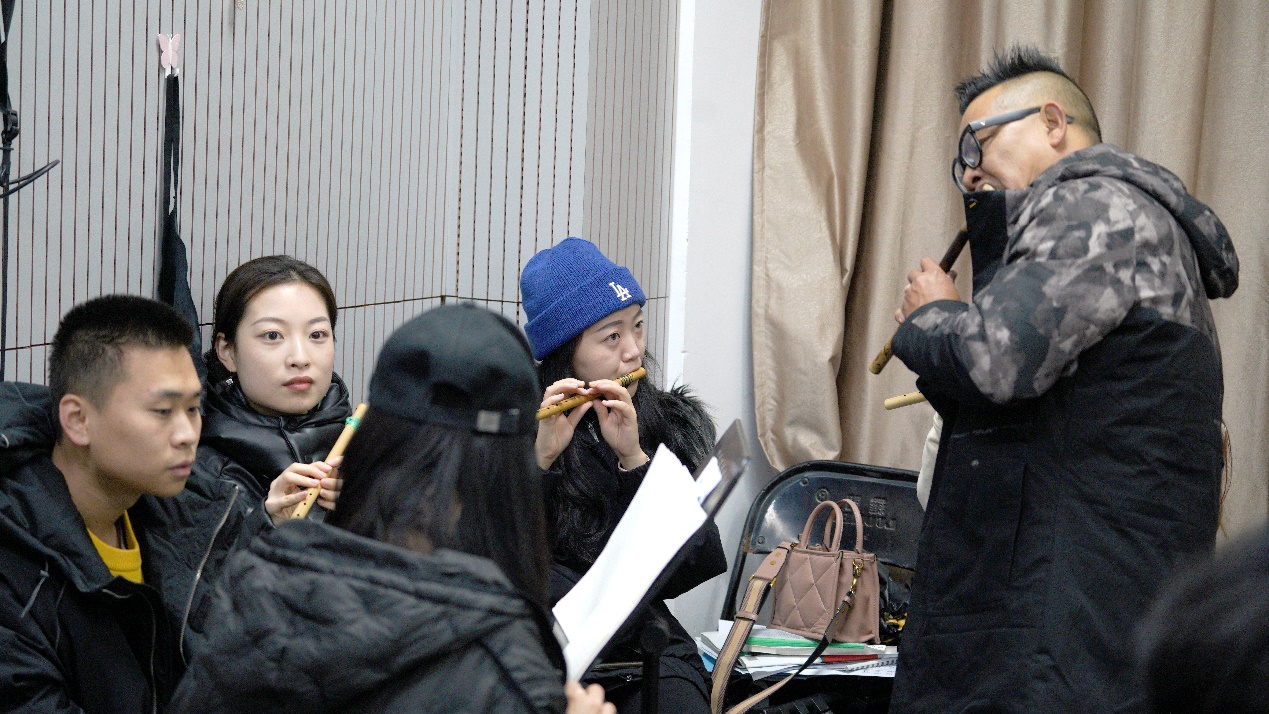 (岩健老师在讲授傣笛的吹奏)