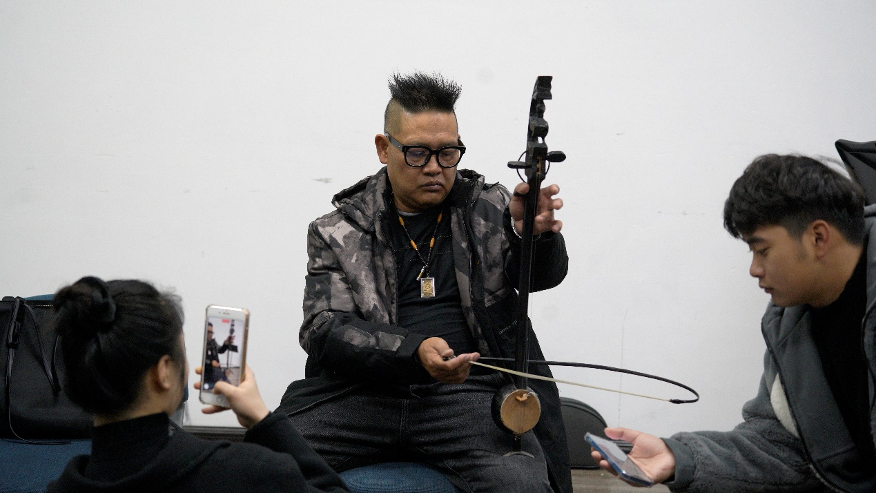 (岩健老师在讲授傣玎的演奏)