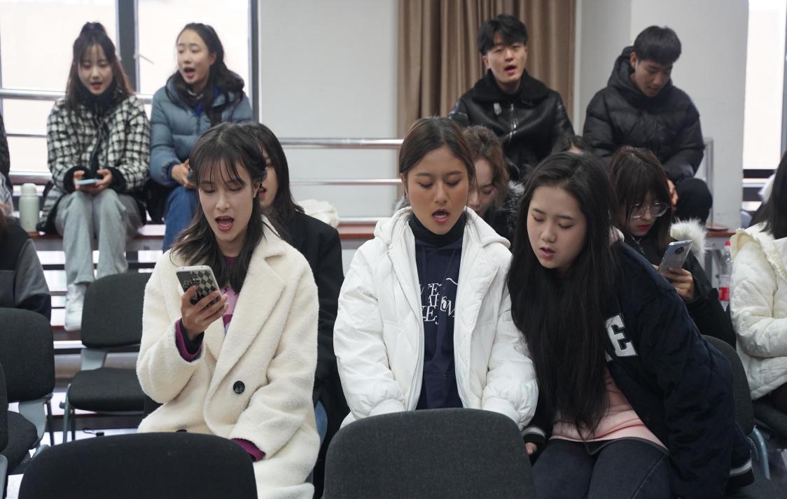 此次工作坊交流学习,王峰等民间艺人向声乐系的同学们传授了傣族古曲《当素当好》,该曲是傣族最古老的歌曲之一,“当素当好”意为“我和你”,讲述了青年男女简单纯粹的爱情。声乐系员工在演唱时,最大的困难不在于对于歌曲旋律的演唱,而在于语言的发音。《当素当好》用傣语演唱,而傣语的发音有许多闭口音,在初次学习时具有较大的难度,但是民间艺人对此耐心、细致地进行讲解,同学们对民间歌舞乐一体的形式也有了直观的艺术感受。