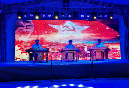 晚会以扬琴重奏《新映山红》拉开了本次音乐思政文艺演出的序幕。随着旋律轻轻奏响,红色精神伴随着音符缓缓流进听众内心,抒发着对革命先烈的缅怀之情,歌颂着今天的幸福生活。