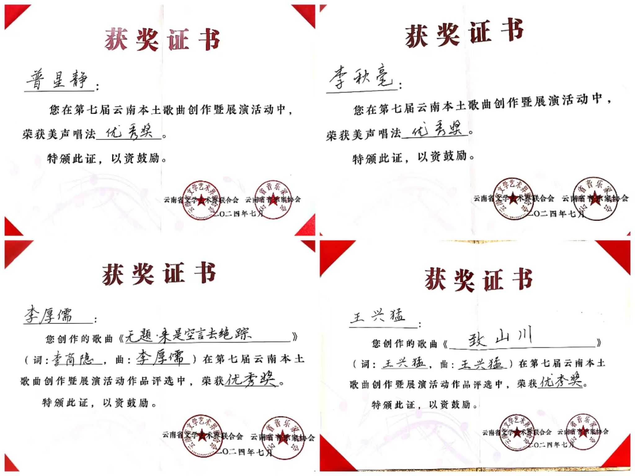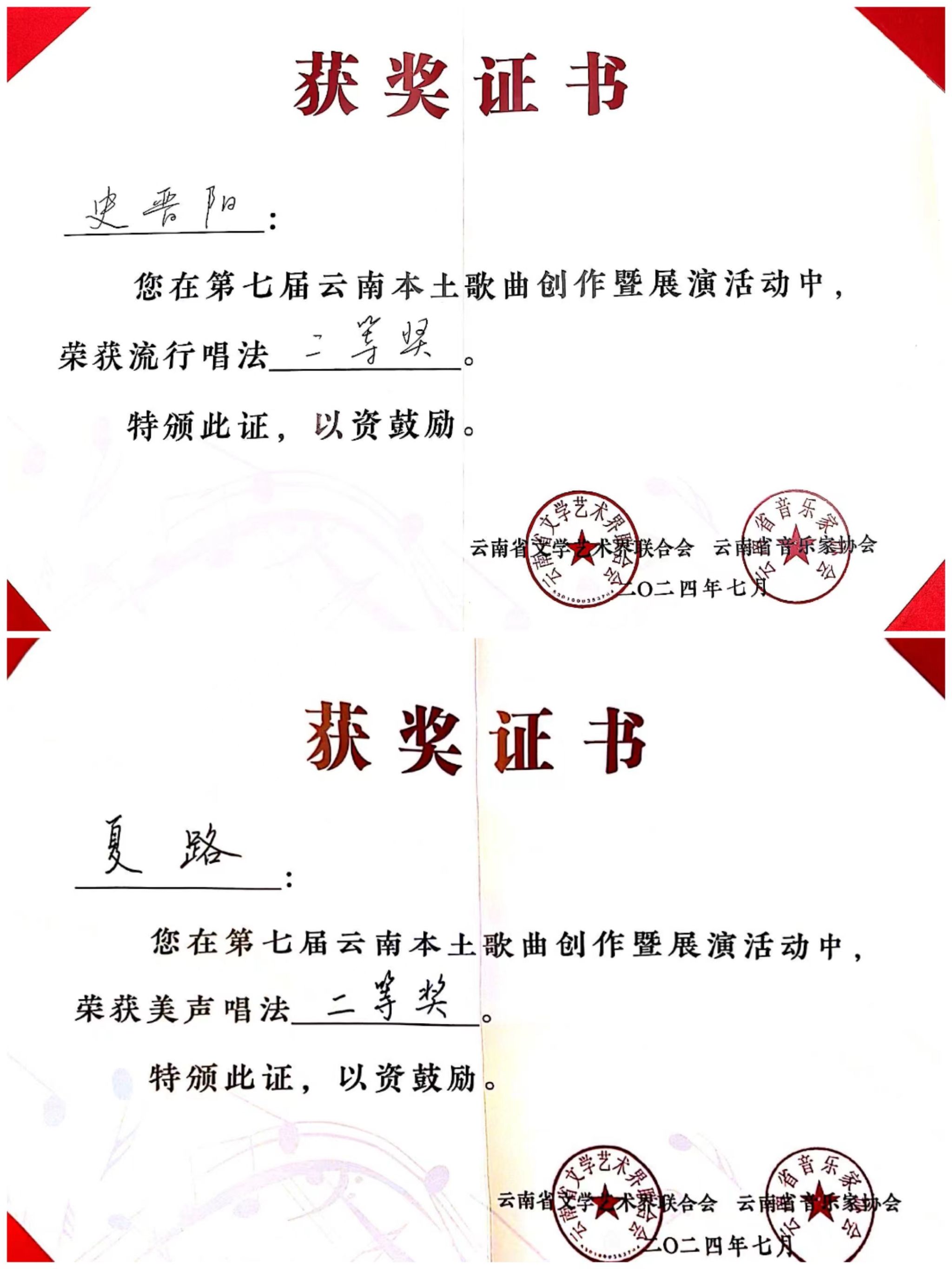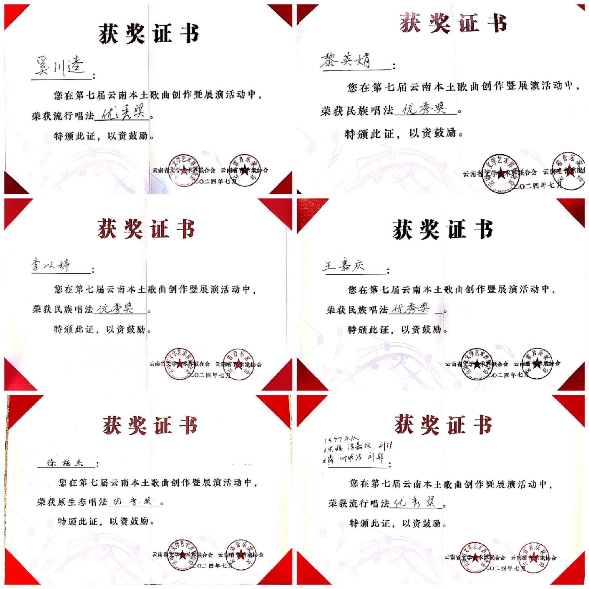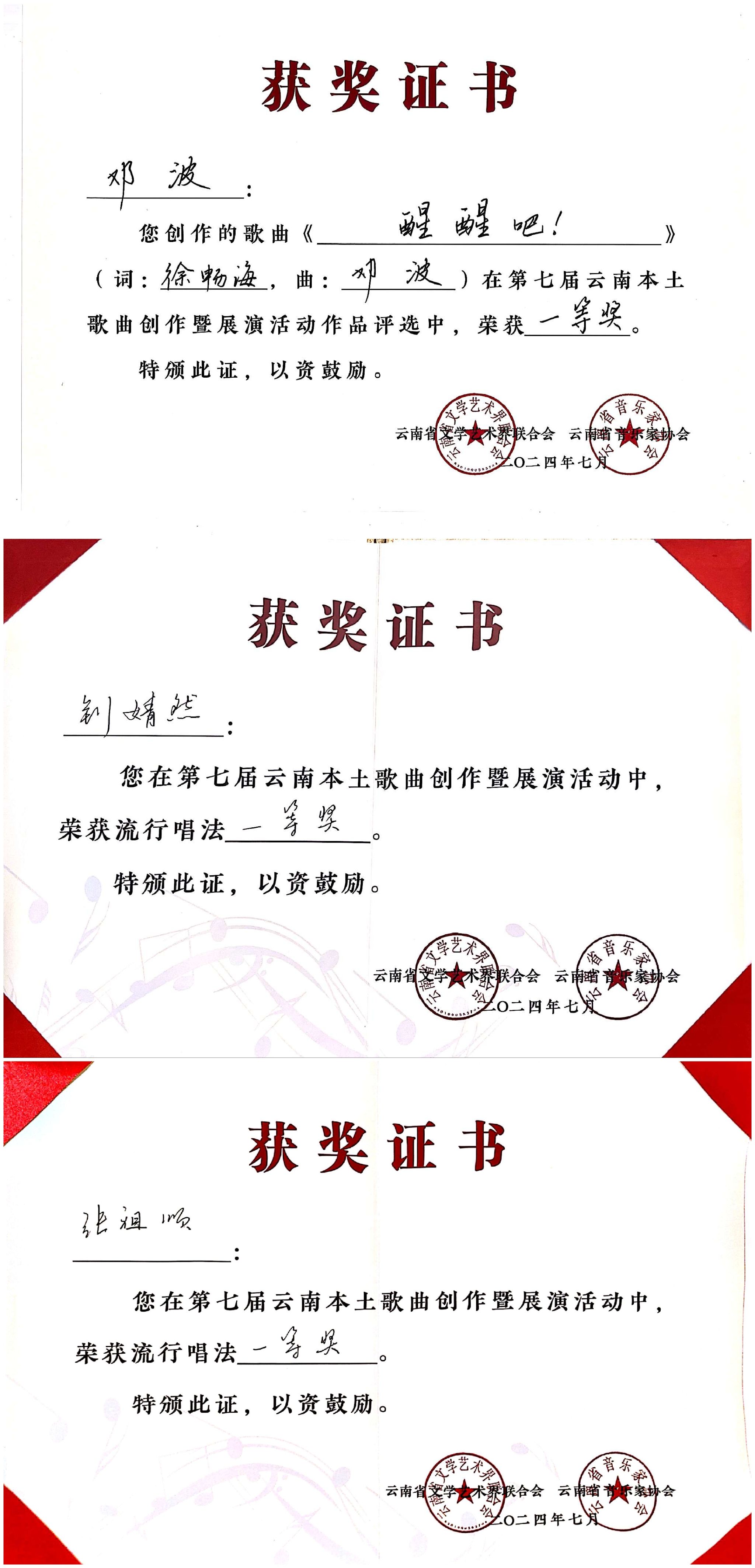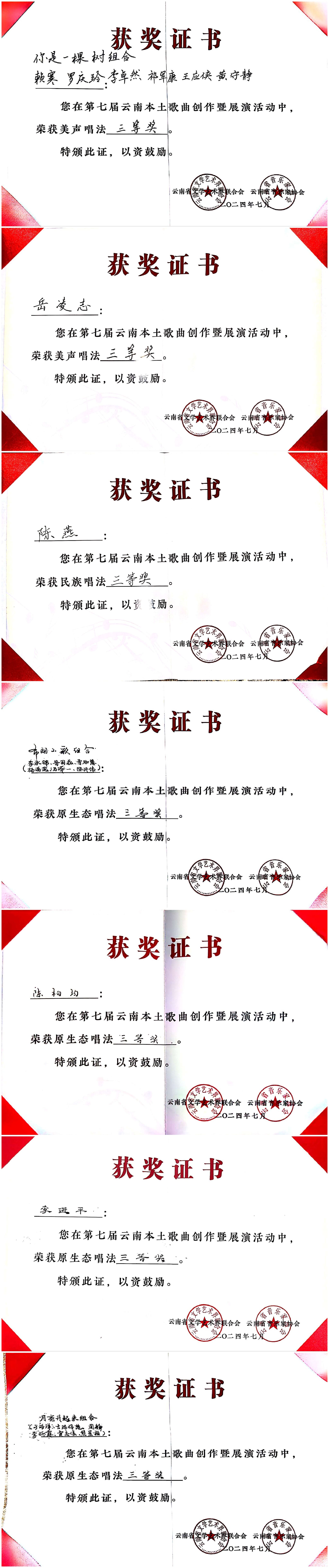 2024年7月23日至27日,由云南省文学艺术界联合会、中共玉溪市委宣传部主办,云南省音乐家协会、玉溪市聂耳文化中心、玉溪市文学艺术界联合会承办的第七届云南本土歌曲创作暨展演活动在玉溪举办。伟德国际victor1946师生在作品类、演唱类(民族、美声、流行、原生态4个组别)两个类别中获3个一等奖、2个二等奖、7个三等奖、10个优秀奖,伟德国际victor1946获优秀组织奖。