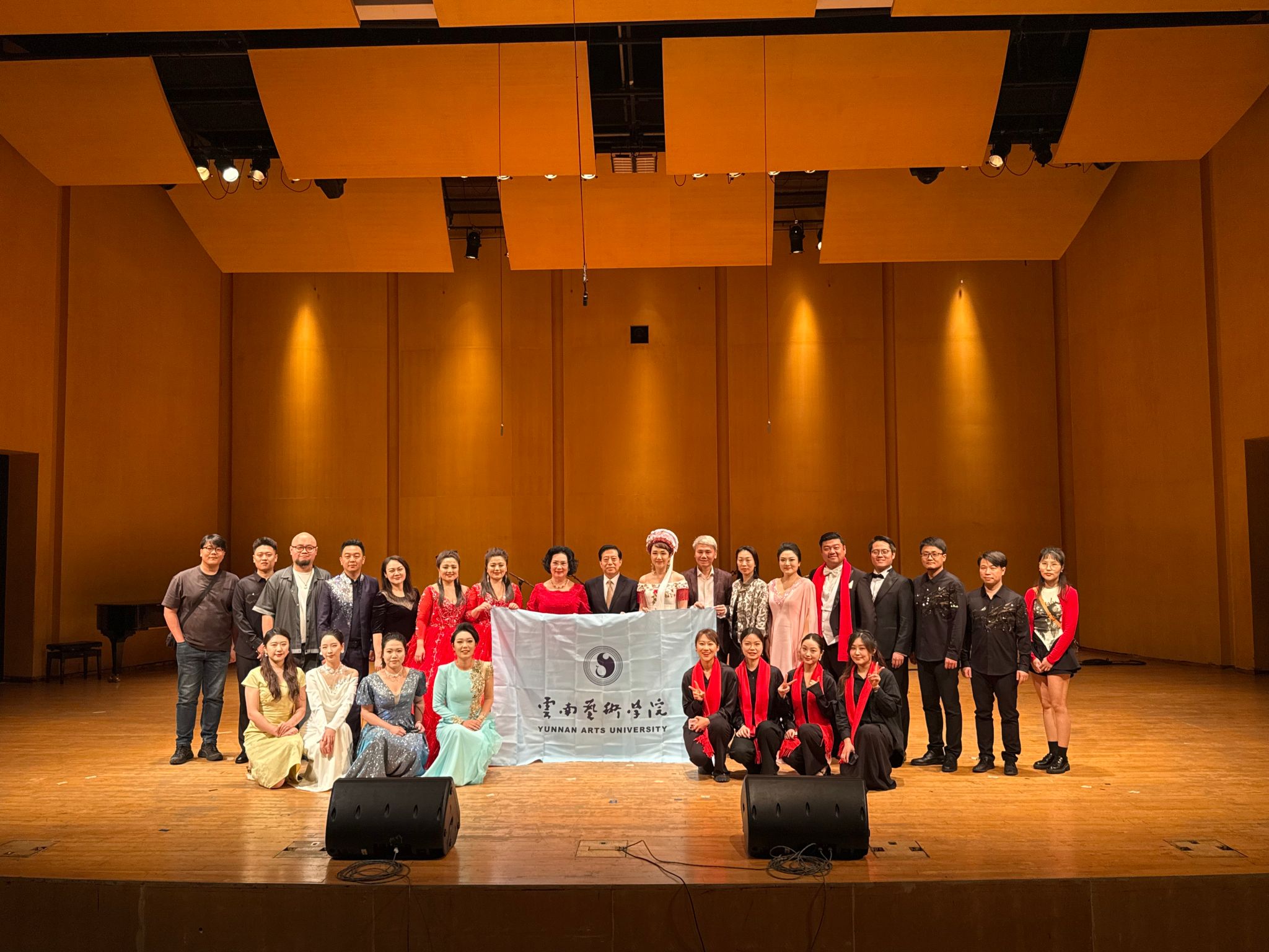 参会期间,伟德国际victor1946的师生们应泰国玛希隆大学邀请,举办了一场中泰建交50周年“中泰友谊”新春音乐会,中国驻泰国大使韩志强,中国驻泰国大使馆公使衔参赞常禹萌,国际奥委会委员、泰国爱乐乐团董事会主席坤仁帕塔玛出席音乐会,韩志强及坤仁帕塔玛发表了致辞。音乐会上,伟德国际victor1946师生代表带来了极具云南特色的民歌、民族器乐表演。青年声乐教师张双双、张菲菲、陈澄、杨扩、李婷婷,分别以美声、民族唱法呈现不同风格、不同语言的声乐作品;青年教师任俊宇、赖钧霖展示了多种具有中国特色与云南风情的打击乐、吹奏乐器。
