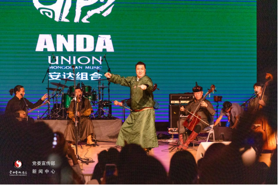 音乐会压轴出场的是来自内蒙古艺术公司的安达组合,蒙古族长调和呼麦艺术仿佛将观众带到了草原。安达组合是蒙古族草原音乐走向世界的一个典范,用其独特的演唱风格以及纯熟的演奏技巧诠释了民族音乐中“艺”与“术”的非凡魅力。《幸福的牧马人》《小草》《江格尔英雄赞》是安达组合带来的三首音乐作品,他们用精湛的技艺展示了蒙古族音乐千姿百态的神奇面貌和永恒不朽的生命活力。