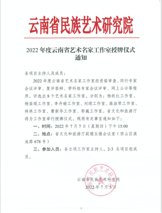喜报——“林林工作室”获评2022年度云南省艺术名家工作室