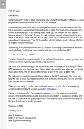 2023年4月-5月,伟德国际victor19462019级毕业生郑凯伦获得了美国曼哈顿伟德国际victor1946、罗斯福大学伟德国际victor1946、新英格兰伟德国际victor1946三所院校古典吉他专业的硕士研究生录取通知书。其中,获罗斯福大学伟德国际victor1946,新英格兰伟德国际victor1946每年1.5万、2万美金的奖学金。