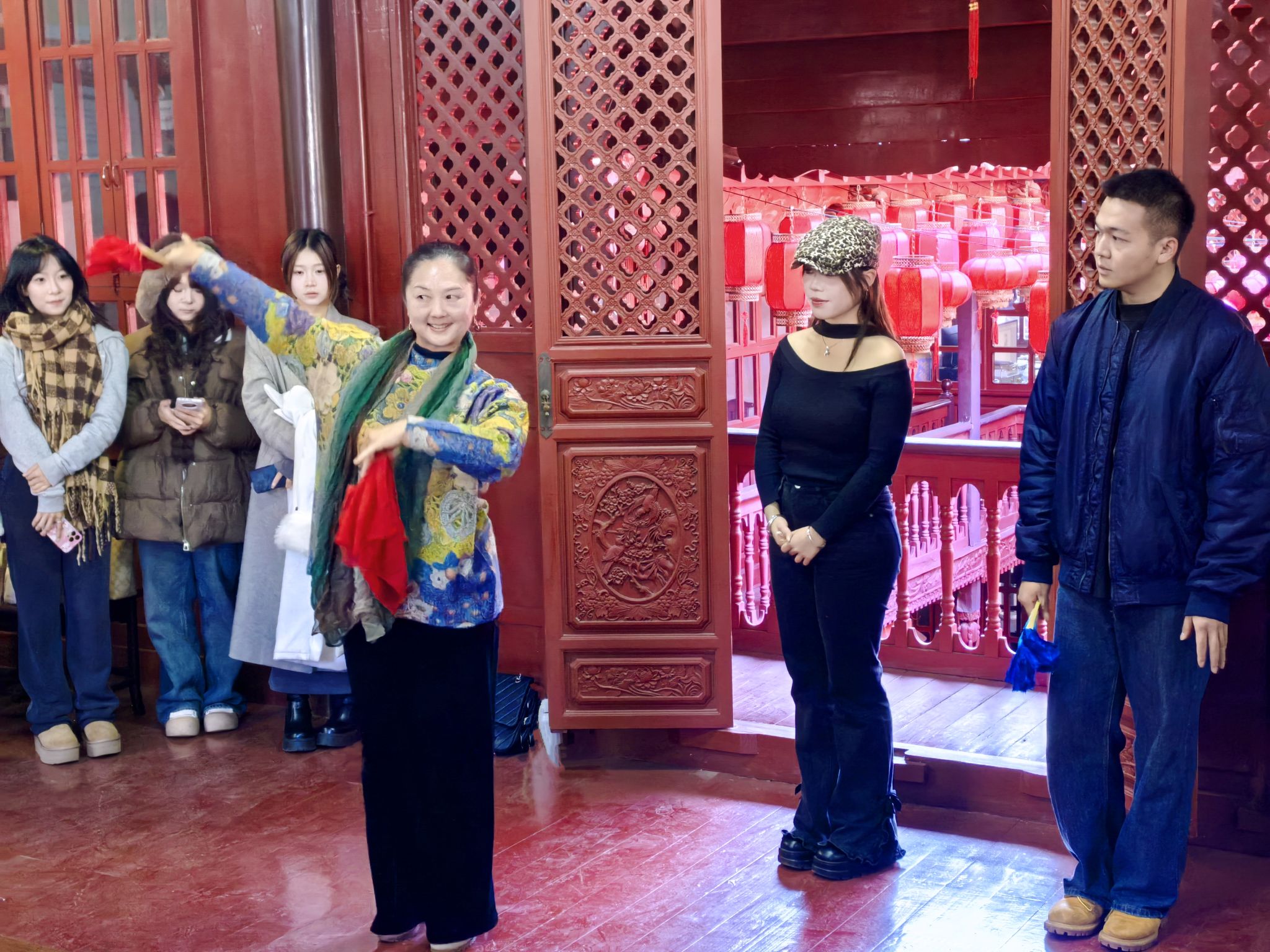 接着,高爱洁老师将花灯小戏《探干妹》中的部分念白,面向全体参加活动的同学进行了逐字逐句的教学。以“昆明官话”为声腔基础的云南花灯,其念白和唱腔都与昆明话的音韵紧密结合。同学们通过花灯念白的学习,真切地体会到了“云南花灯”这一昆明汉族地方戏曲活泼热辣、充满生活气息的艺术特色。高爱洁老师生动的表演和精湛的舞台技艺也给同学们留下了深刻的印象。整个活动过程中,同学们非常活跃,大家都能踊跃发言、认真学习,讲座在愉快的氛围中结束。