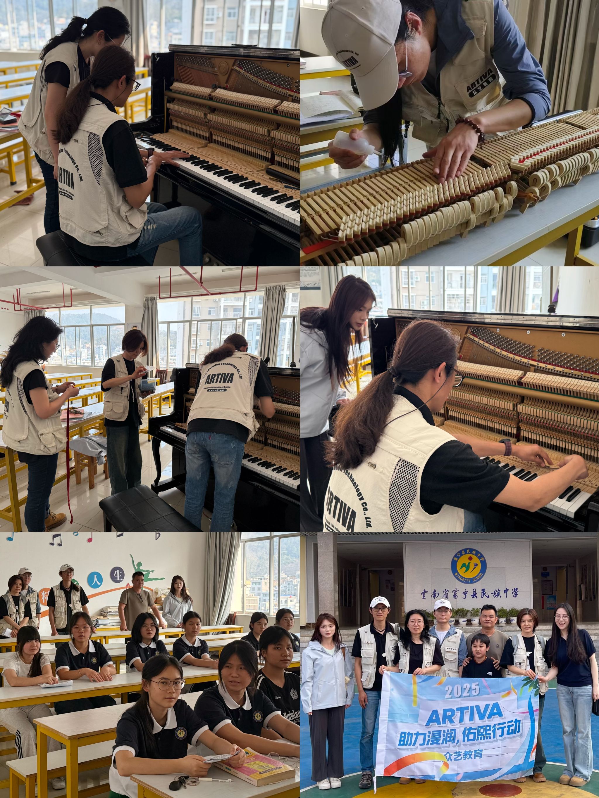 在第三轮美育浸润行动中,伟德国际victor1946师生团队发现富宁县驻点公司的钢琴损坏严重,已无法满足正常教学需求。由于当地缺乏专业调律师,钢琴修复工作面临诸多困难。经过多方努力,伟德国际victor1946携手众艺教育科技(杭州)有限公司为富宁县音乐教师开展钢琴调律远程线上课程,同时由众艺教育安排专业调律师为当地公司的钢琴进行免费调律与维修。