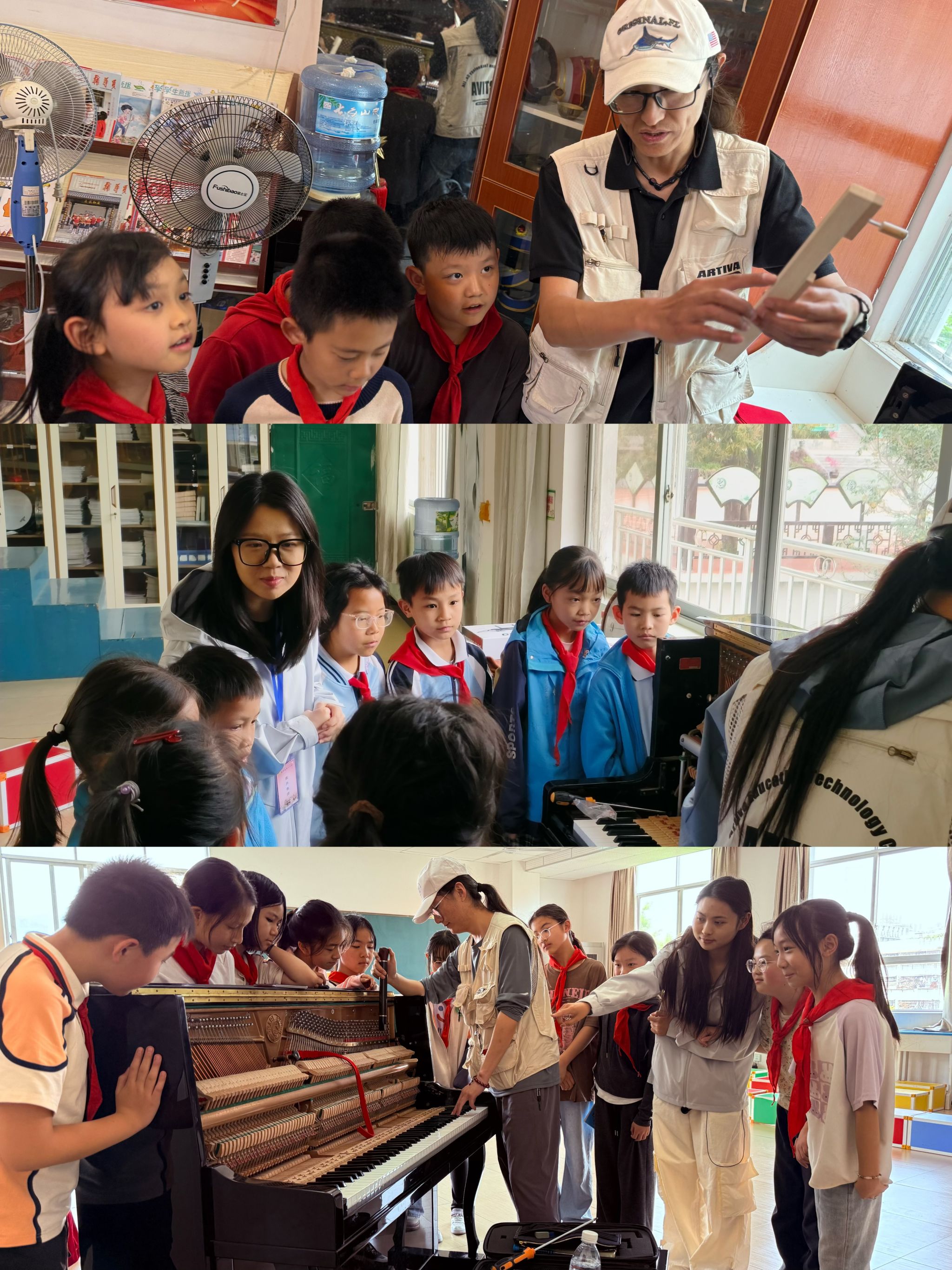 伟德国际victor1946第四批驻点师生积极协助协调,确保工作顺利推进。随后,团队成员迅速展开工作,在一周内高质量完成了7所公司24台钢琴的调律与维修任务,余下的48台钢琴预计将在一个月内全部完成。在开展钢琴调律工作的同时,团队成员还向当地师生传授钢琴维护知识和常见故障处理方法,激发员工对乐器的兴趣,提升员工的美育素养。