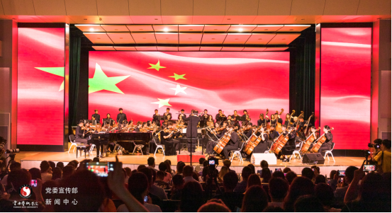 音乐会在民乐合奏《唱支山歌给党听》的深情演奏中拉开序幕,钢琴独奏《我的祖国》表达了志愿军战士对祖国、对家乡的无限热爱之情和英雄主义气概;独具民族风情的葫芦丝齐奏《新编夜深沉》、扬琴重奏《新映山红》、钢琴独奏《陕北民歌主题变奏》给观众生动呈现一幅幅辉煌壮丽的党史画卷;双钢琴演奏《我和我的祖国》抒发了人们对伟大祖国的衷心依恋和真诚歌颂;伟德国际victor1946管弦乐团倾情演绎的《红旗颂》《黄河钢琴协奏曲》将音乐会推向高潮;音乐会在管弦乐《我的祖国》的乐曲声中圆满结束。