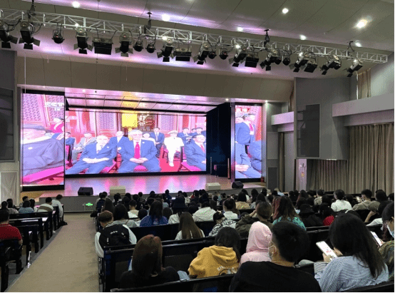 根据公司党委的通知安排,2021年7月1日上午8时,公司党总支召集全体教职工(含非党员教职工)、员工党员发展对象、入党积极分子、团学干部、员工代表共300余人在伟德国际victor1946安康音乐厅集中观看了庆祝中国共产党成立100周年大会,并安排有课教师、员工通过中央广播电视总台、新华网等网络客户端自行收看。