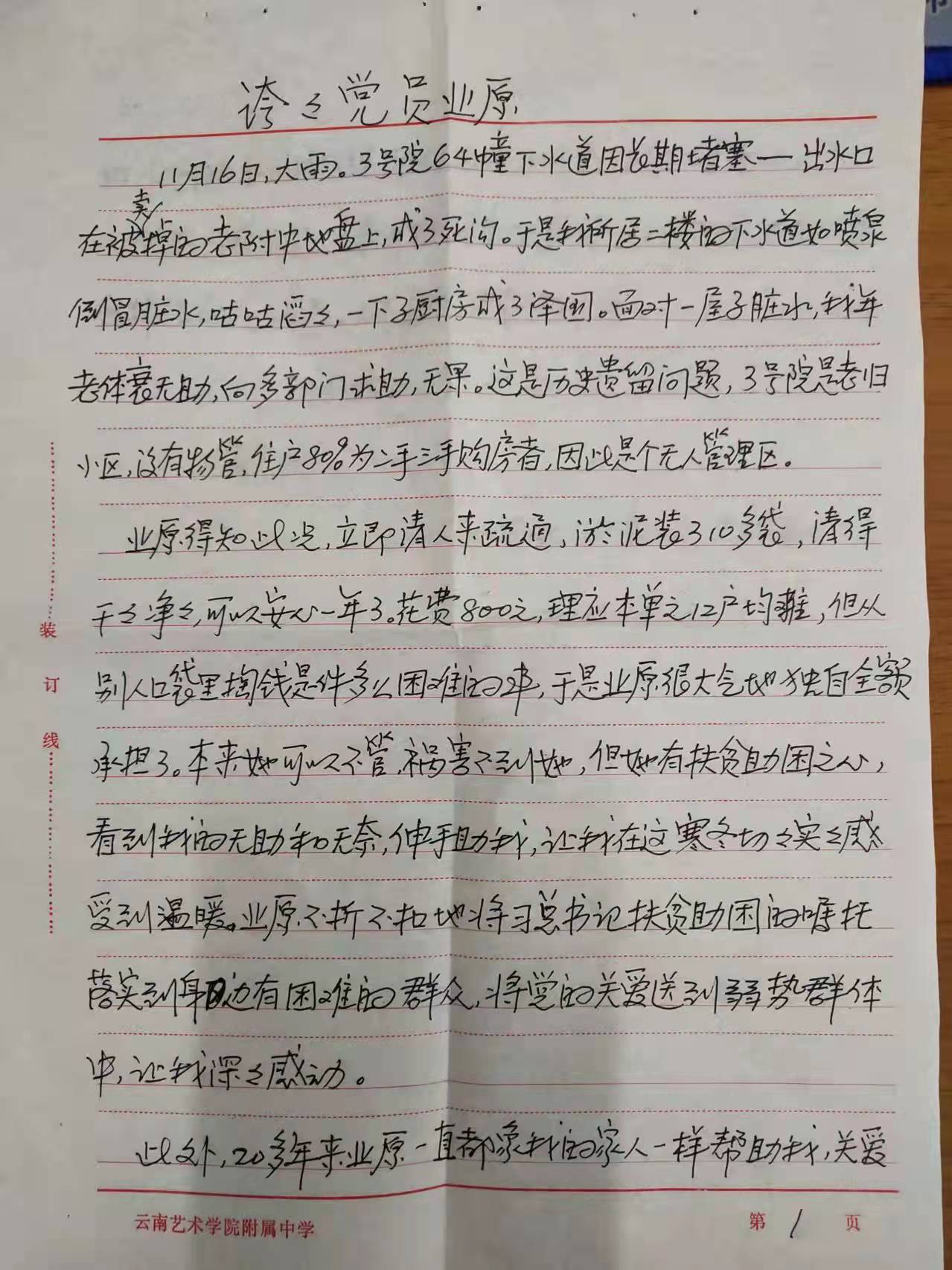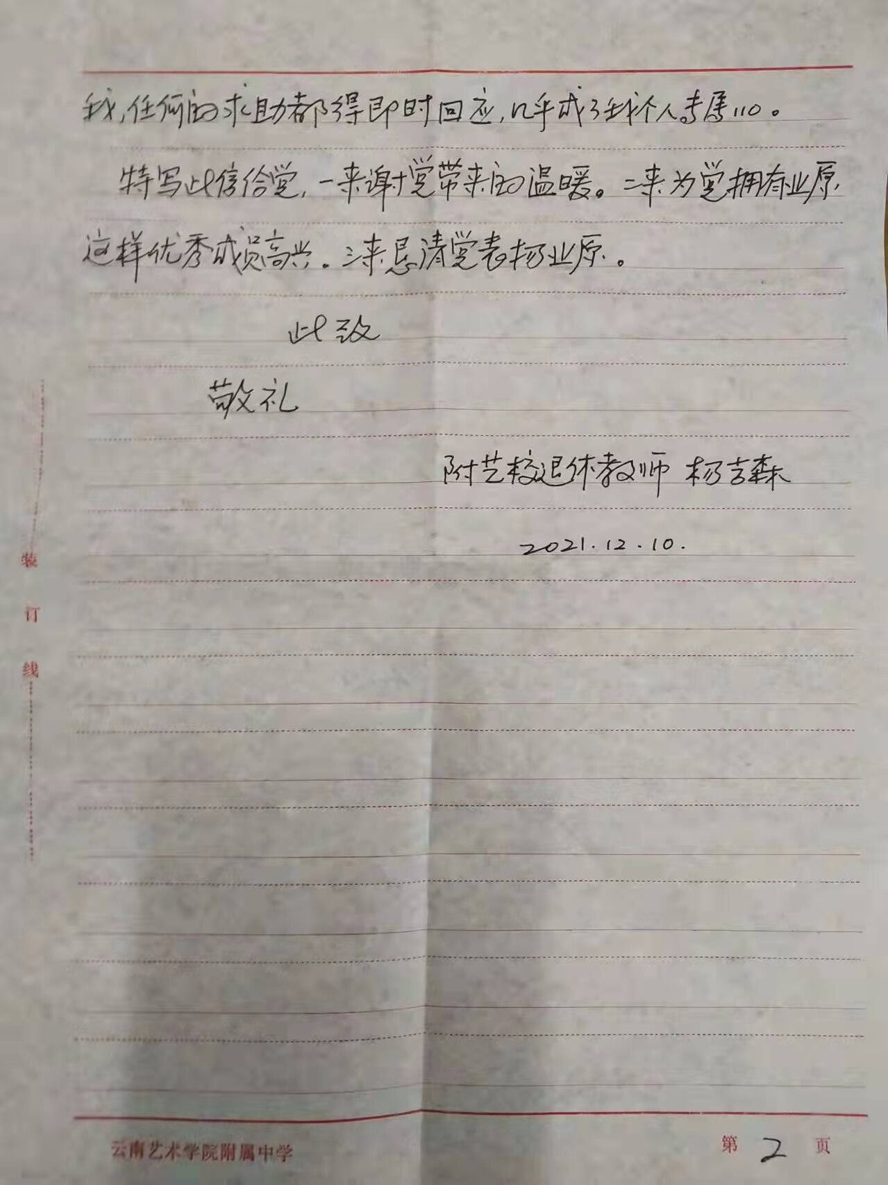伟德国际victor1946离退休杨吉森老师亲笔书写感谢表扬信,感谢公司党员业原同志。