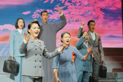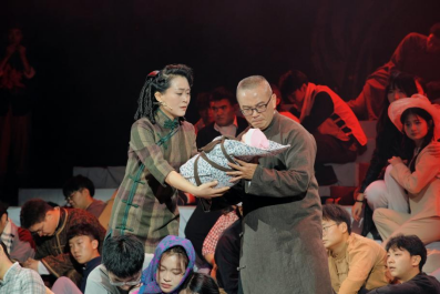 图3安娥、田汉与危难中的百姓(扮演者:舒丽萍、尹伟)