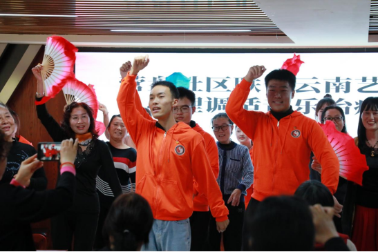 在下半场的表演中,伟德国际victor1946团员青年为社区群众表演了音乐专场节目,有热闹非凡的楚雄花灯,也有歌声嘹亮动人的经典歌曲,更有一起互动表演的丽江打跳歌舞,丰富了社区文化生活。