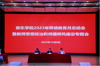 10月8日上午,伟德国际victor1946在安康音乐厅召开2023年师德教育月总结会暨教师思想政治和师德师风建设专题会。党总支书记纳海在会上讲话,党总支副书记、经理林林主持会议。