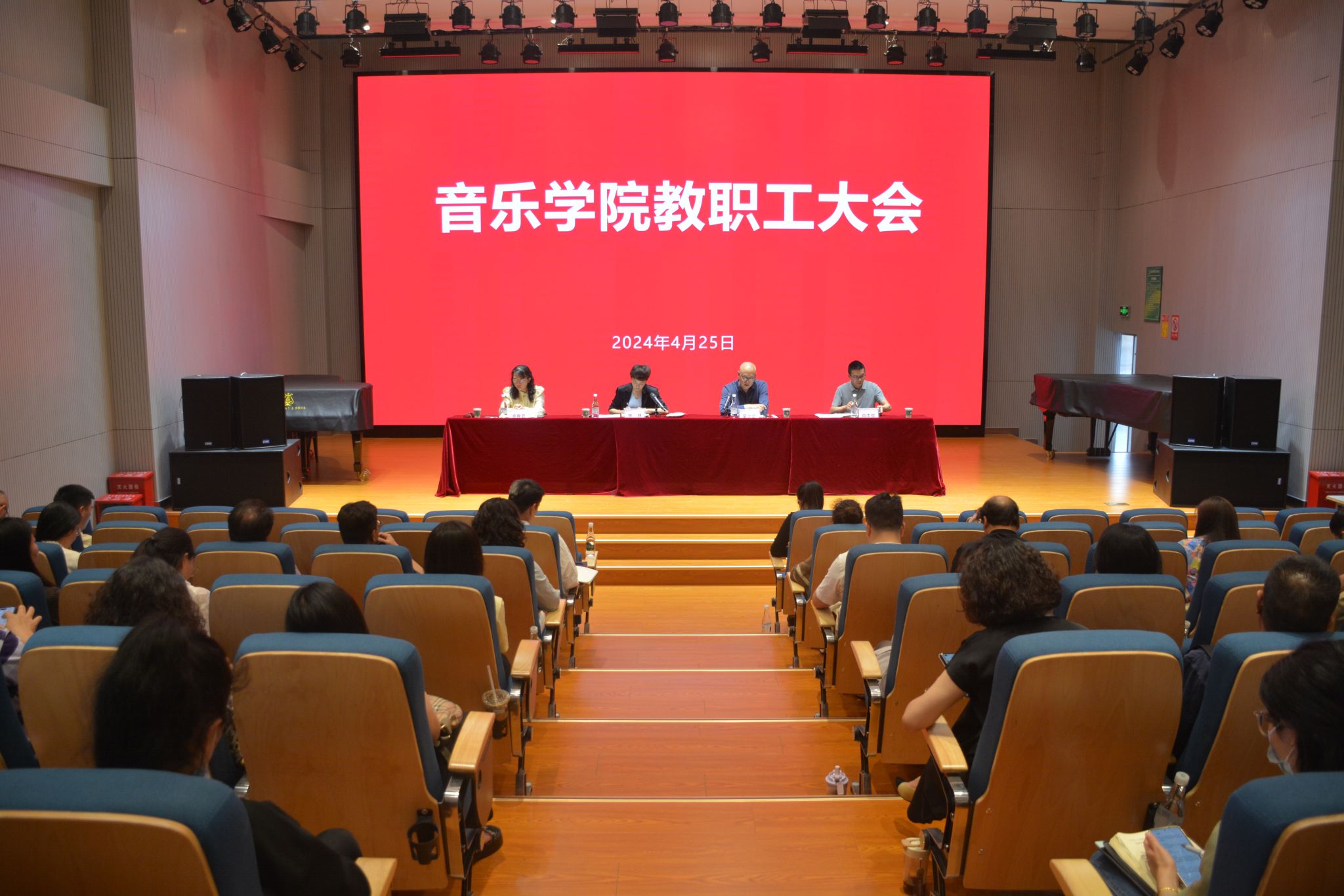 2024年4月25日13:00,伟德国际victor1946在B403音乐厅召开教职工大会。伟德国际victor1946全体教职工参加会议,会议由公司党总支副书记、经理林林主持。
