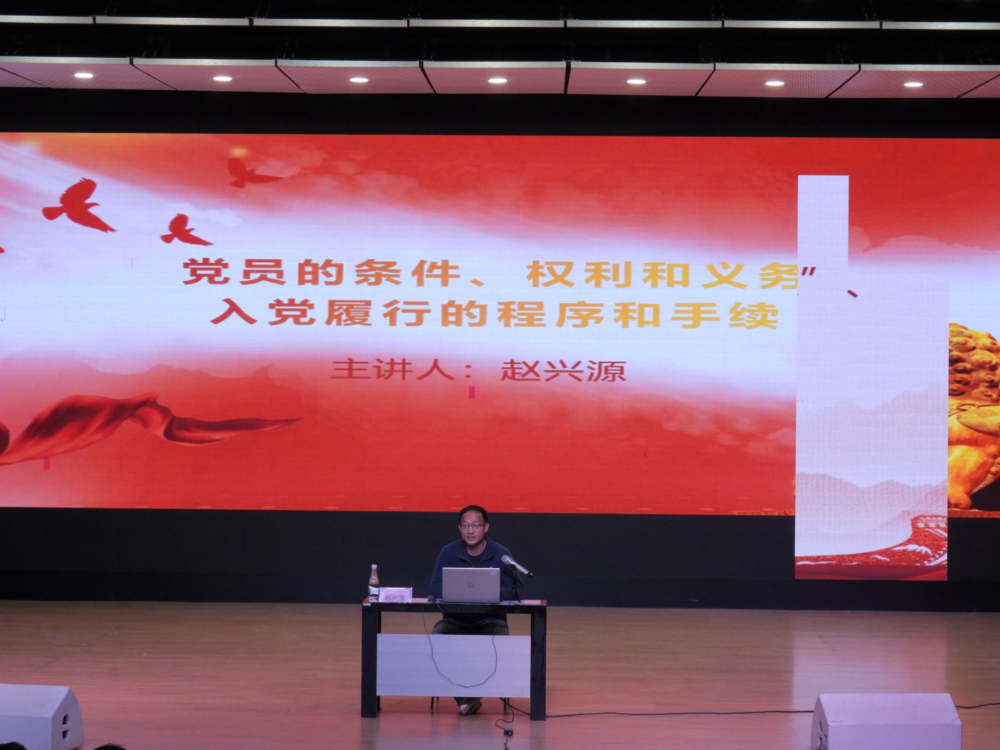 赵兴源老师以“党员的条件、权利和义务以及入党履行的程序和手续”为题,从端正入党动机、党员条件、党员必须履行的义务、党员享有的权利、入党履行的程序和手续五方面给在座学员进行授课。要求广大入党积极分子、发展对象要对标对表,找出自己与共产党员的差距并积极补足,不断努力,争取早日入党。党员要发挥好先锋模范作用,在知行合一中担当作为,彰显使命与担当。