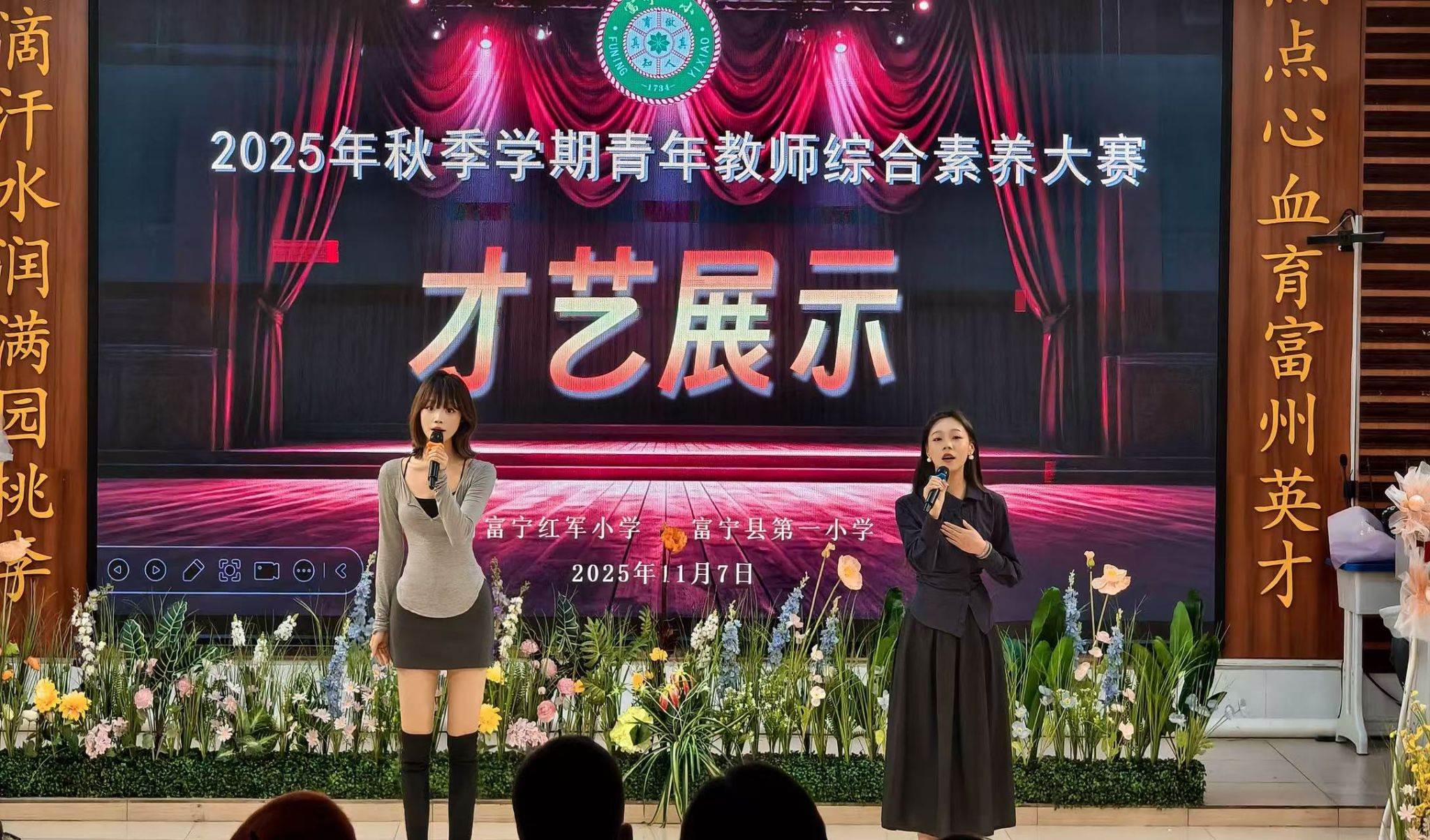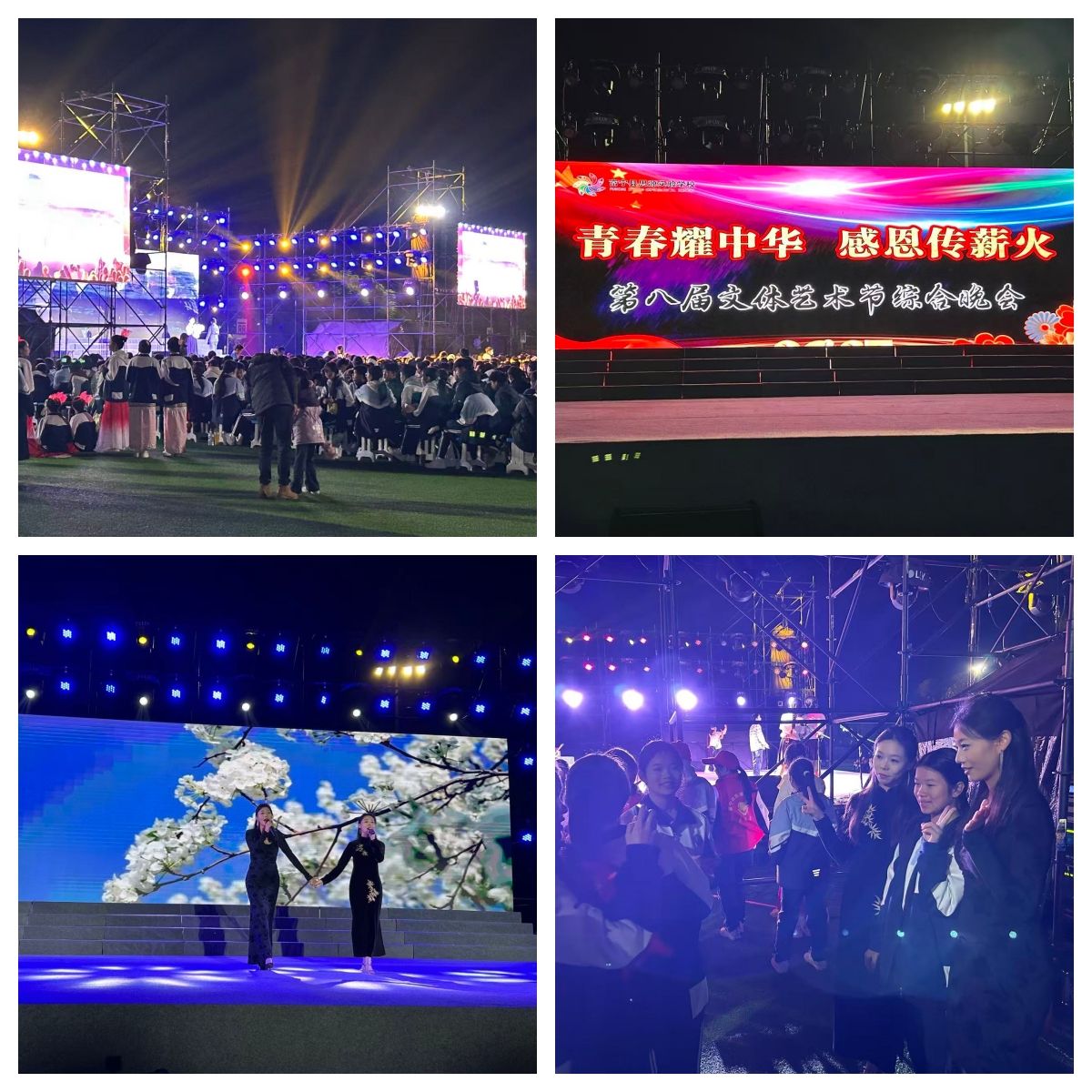 在富宁县各校举办艺术体育节之际,美育浸润团队支教员工也积极参与到各项展演活动中,李垚垚、沈于童同学助演了富宁县第一小学2025年秋季学期青年教师综合素养大赛,专业的演唱表现收获了在校师生的一致好评;带队教师洪旸与李佳溪、李垚垚同学共同赴富宁县思源实验公司助演了第八届文体艺术节综合晚会,两位同学带来了经典民谣歌曲《梨花又开放》,精彩的演唱赢得了在校师生的好评与掌声。