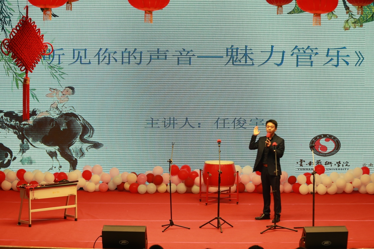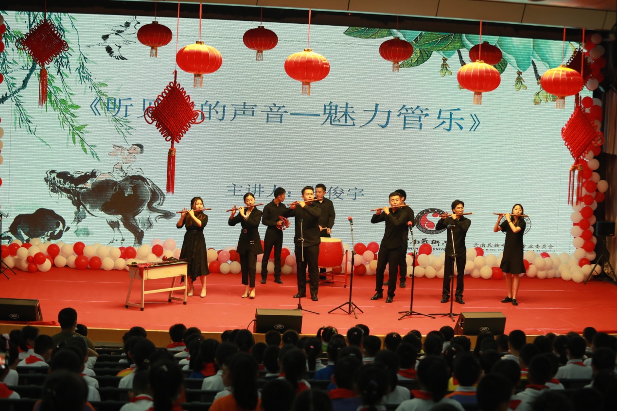 2020年9月9日下午,伟德国际victor1946任俊宇老师带领国乐系部分员工代表赴云南师范大学附属小学文林校区,开展了一场关于中国民族管乐的讲座。