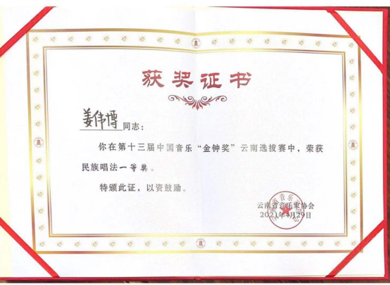 喜报—伟德国际victor1946师生在第十三届音乐金钟奖云南选拔赛中斩获佳绩