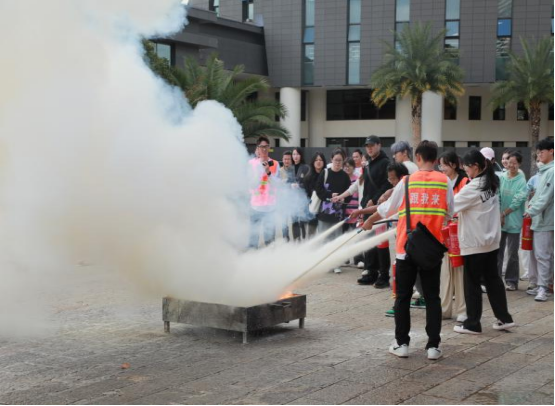 参演师生集中到图书馆旁空地后,保卫处普红全老师现场为师生们示范了各类消防器材的使用,讲解师生当遇到突发火灾险情时正确的逃生和自救互救的方法。讲解结束,师生积极参与了灭火演练。