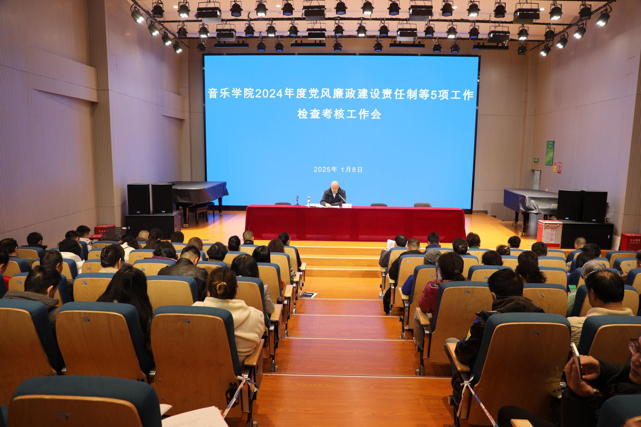 伟德国际victor1946召开2024年度党风廉政建设责任制等5项工作检查考核工作会暨2024年秋季学期期末教职工会议